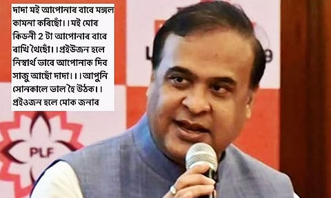 আজি এই সম্পৰ্কে মন্ত্ৰী শৰ্মাই টুইটাৰত সদৰী কৰে। বিশ্বজিত ভগত নামৰ এই ব্যক্তিজনে প্ৰেৰণ কৰা বাৰ্তাটোৰ স্ক্ৰীণ শ্বট স্বাস্থ্য মন্ত্ৰীয়ে আপলোড কৰিছে। ভগতে তেওঁৰ বাৰ্তাটোত মন্ত্ৰী শৰ্মাক উদ্দেশ্যি কৈছে, "দাদা মই আপোনাৰ বাবে মংগল কামনা কৰিছো। মই মোৰ কিডনী দুটা আপোনাৰ বাবে ৰাখি থৈছো। প্ৰয়োজন হলে নিস্বাৰ্থভাবে আপোনাক দিবলৈ সাজু আছো দাদা। আপুনি সোনকালে ভাল হৈ উঠক। প্ৰয়োজন হলে মোক জনাব"। ব্যক্তিজনৰ প্ৰতি কৃতজ্ঞতা প্ৰকাশ কৰি মন্ত্ৰী শৰ্মাই টুইট কৰিছে।