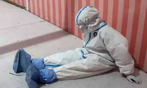 এখন ভাইৰেল হোৱা ফটো। ফটোখনত দেখা গৈছে ক'ৰ'নাবিৰোধী যুঁজৰ এগৰাকী অক্লান্ত সেনানীক। এই ফটোৱে সম্প্ৰতি অনেকৰ হৃদয় জয় কৰিছে। উল্লেখ্য যে ৰাজ্যত ক'ৰ'না ভাইৰাছৰ সংক্ৰমণ বৃদ্ধিৰ সময়তো চিকিত্সক, নাৰ্ছ আদিয়ে অবিৰত সেৱা আগবঢ়াই আছে। নিজৰ জীৱনলৈ ভ্ৰূক্ষেপ নকৰাকৈ স্বাস্থ্যকৰ্মীসকলে সেৱা আগবঢ়াই আহিছে। এনে সময়তে এগৰাকী স্বাস্থ্যকৰ্মীৰ কৰ্তব্যৰত অৱস্থাৰ এখন ফটো ভাইৰেল হৈছে।ফটোখনত দেখা গৈছে পি পি ই কিট পৰিহিত অৱস্থাত এগৰাকী নাৰ্ছক। ইয়াৰ অৰ্থ হৈছে নাৰ্ছগৰাকী কৰ্তব্যৰত অৱস্থাতে আছে।