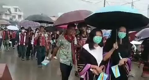 কোহিমাঃ অসম, অৰুণাচল, মণিপুৰ আৰু নাগালেণ্ডে বৃহস্পতিবাৰে গ্লোবেল নাগা ফ'ৰামত (জিএনএফ) যোগদান কৰি বিভিন্ন অঞ্চলৰ শ শ নাগাই দুদিনীয়া সংহতি পদযাত্ৰাৰ আয়োজন কৰিছে।