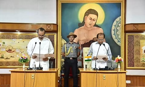 অধ্য়াপক নিৰোদ বৰুৱাই ৰাজভৱনত আয়োজিত এক অনুষ্ঠানত শপত গ্ৰহণ কৰে।