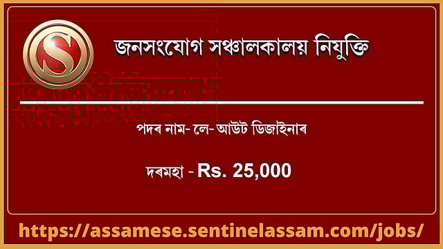 অসম চৰকাৰৰ তথ্য আৰু জনসংযোগ সঞ্চালকালয় কাৰ্যালয়ত লে- আউট ডিজাইনৰৰ পদৰ নিযুক্তিৰ বাবে উপযুক্ত প্ৰাৰ্থীৰ পৰা আবেদন বিচাৰিছে।