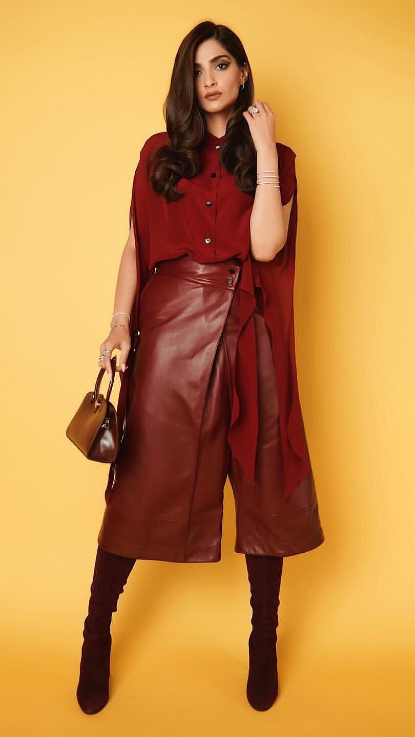 এই চেহেৰাটোত, সোনমে তেওঁৰ একৰঙী অৰ্ধ-আনুষ্ঠানিক পোছাকটো ক'লা চামৰাৰ বুট আৰু ওজড বছ লেডী ভাইবৰ সৈতে ষ্টাইল কৰিছিল!