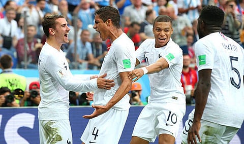 নিজনি নভগোড ষ্ট্ৰেডিয়ামত শুকুৰবাৰে অনুস্থিত হোৱা প্ৰথমখন কোৱাৰ্টাৰ ফাইনেলত ১৯৯৮ চনৰ চেম্পিয়ন ফ্ৰান্সে দুবাৰৰ বিজয়ী উৰুগুৱেক ২-০ গ'লত পৰাস্ত কৰি প্ৰথমটো দল হিচাপে ছেমিফাইনেলত প্ৰৱেশ কৰিছে।৪০ মিনিটত তাৰকা এন্টনি গ্ৰিজমানে মৰা ফ্ৰি-কিকক দৰ্শনীয় হেডেৰে গ'ল কৰি ফৰাচী দলটোক ১-০ অগ্ৰগতি প্ৰদান কৰে ডিফেন্ডাৰ আৰ ভাৰানেই।৬১ মিনিটত গ্ৰিজমানে দূৰৰ পৰা আৰু এটা গ'ল কৰি ফ্ৰান্সৰ বিজয় নিশ্চিত কৰে।আঘাত প্ৰাপ্ত এডিনচন কাভানিৰ অনুপস্থিতিত লুইজ চুৱাৰেজে কোনোধৰনৰ প্ৰভাৱ পেলাব নোৱাৰিলে ফ্ৰান্সৰ ৰক্ষনবিভাগত।