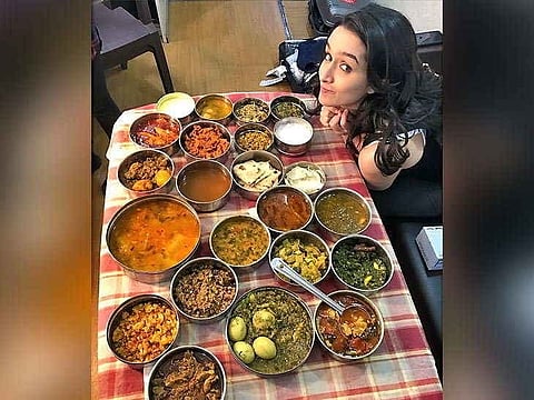 সম্প্ৰতি শ্ৰদ্ধাৰ ইনষ্টাগ্ৰামত পোষ্ট কৰা এই ফটোখন ভাইৰেল হৈছে অনুৰাগীসকলৰ মাজত ৷ ইফালে,শ্ৰদ্ধা কাপুৰে শ্বেয়াৰ কৰা খাদ্য সম্ভাৰসমূহত প্ৰায় ২৩ বিধ ব্যঞ্জনৰ ভিতৰত আছে কণীৰ কাৰী,মাংস,মিক্স ভাজি,দালিকে ধৰি বিভিন্ন ব্যঞ্জন ৷ অন্যহাতে দেখাত অত্যন্ত সোৱাদ লগা ব্যঞ্জনসমূহ দেখি ইনষ্টাগ্ৰামত বিভিন্ন কমেন্ট কৰিছে শ্ৰদ্ধাৰ অনুৰাগীসকলে ৷
