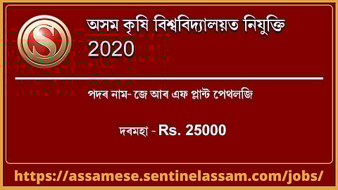অসম কৃষি বিশ্ববিদ্যালয় নিযুক্তি , ২০২০ , যোৰহাট