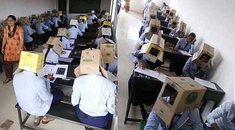 নকল ৰখাবৰ বাবে কৰ্ণাটকৰ এখন মহাবিদ্যালয়ত ছাত্ৰ ছাত্ৰী সকলৰ মুৰত বাকচ পিন্ধাই দিয়ে । যাৰ ফলত ছাত্ৰ ছাত্ৰী সকলে কোনো ফালে চাব পৰা নাছিল । ইয়াৰ পিছতেই মহাবিদ্যালয় খনৰ এই ঘটনাটোৱে সমগ্ৰ ছোচিয়েল মিডিয়াত খলকনিৰ সৃষ্টি কৰে ।