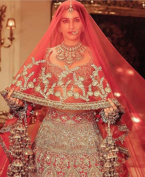 এযোৰ পৰম্পৰাগত লেহেঙ্গাত মোহময়ীৰূপত কেমেৰাত ধৰা দিছে অভিনেত্ৰী কৃতি ছাননে। এই লেহেঙ্গা কইনাই পৰিধান কৰে। তেওঁ পৰিধান কৰা এই লেহেঙ্গাৰ আটকধুনীয়া ডিজাইন কৰিছে মণীষ মালহোত্ৰাই। ৰঙা লেহেঙ্গাযোৰে অভিনেত্ৰীগৰাকীক অপূৰ্ব সুন্দৰৰূপ দিছে।