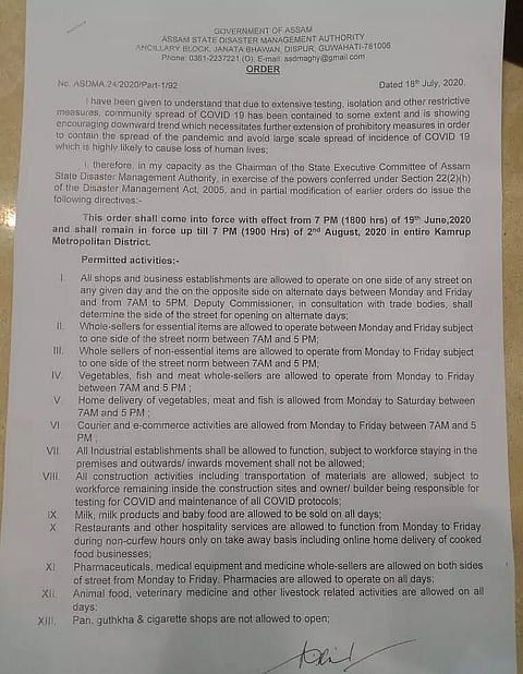 অহা ১৯ জুলাইৰ পৰা কামৰূপ মহানগৰত তলাবন্ধ (লক-ডাউন)ৰ ক্ষেত্ৰত ৰাজ্য কেতবোৰ শিথিলতা ঘোষণা কৰিছে। মুখ্য সচিব কুমাৰ সঞ্জয় কৃষ্ণই শনিবাৰে এখন সংবাদমেলত এই কথা ঘোষণা কৰে। কাইলৈ ১৯ জুলাইৰ সন্ধিয়া ৭ বজাৰ পৰা অহা ২ আগষ্টলৈ এই শিথিলতা প্ৰযোজ্য হব। মুখ্য সচিবগৰাকীয়ে কৰা ঘোষণা অনুসৰি নিম্নোক্ত ধৰণেৰে কাইলৈৰ পৰা কামৰূপ মহানগৰ জিলাত তলাবন্ধৰ ক্ষেত্ৰত শিথিলতা উপলব্ধ হ'বঃ